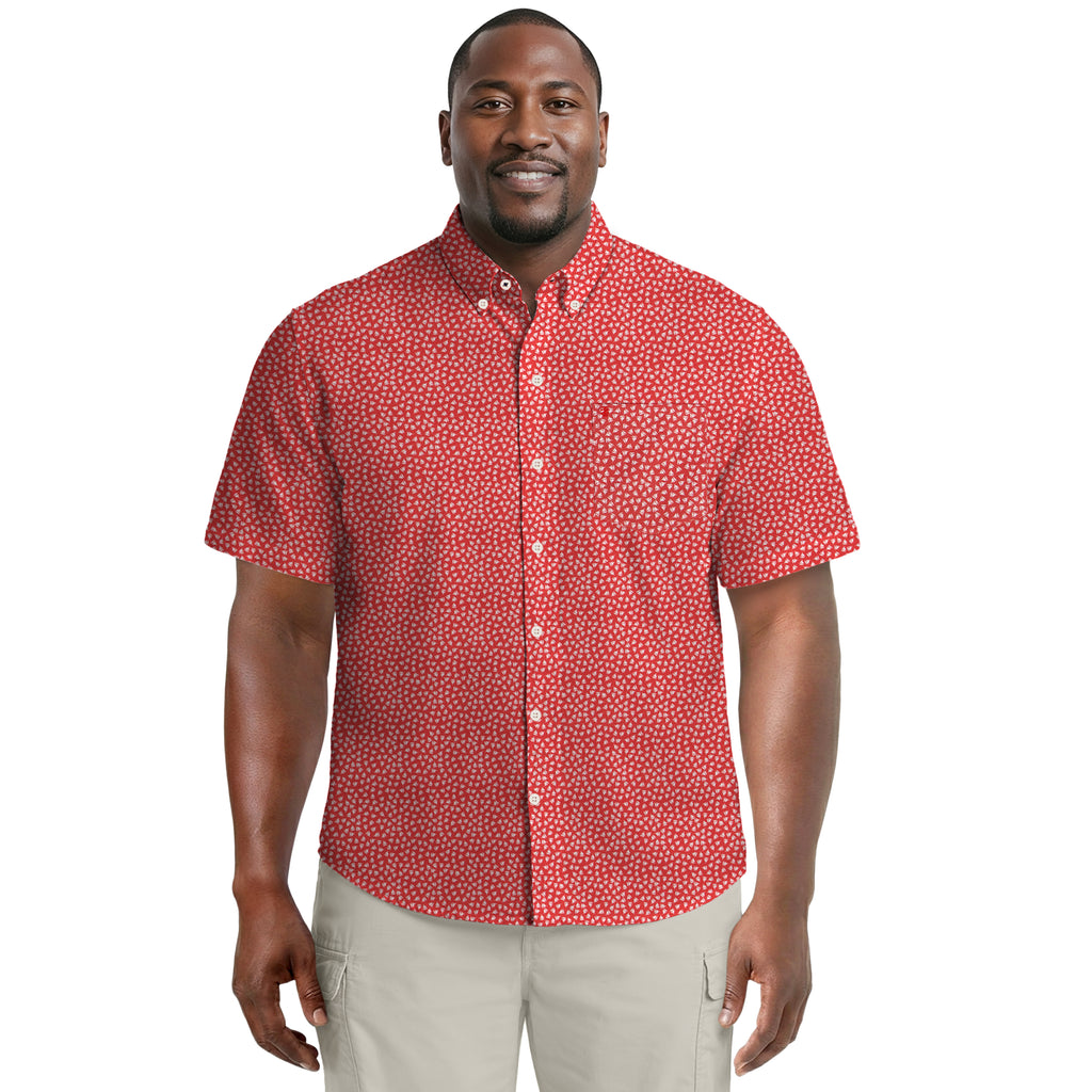 BIG & TALL BREEZE S/S PRINTED BUTTON-DOWN SHIRT - SALTWATER RED