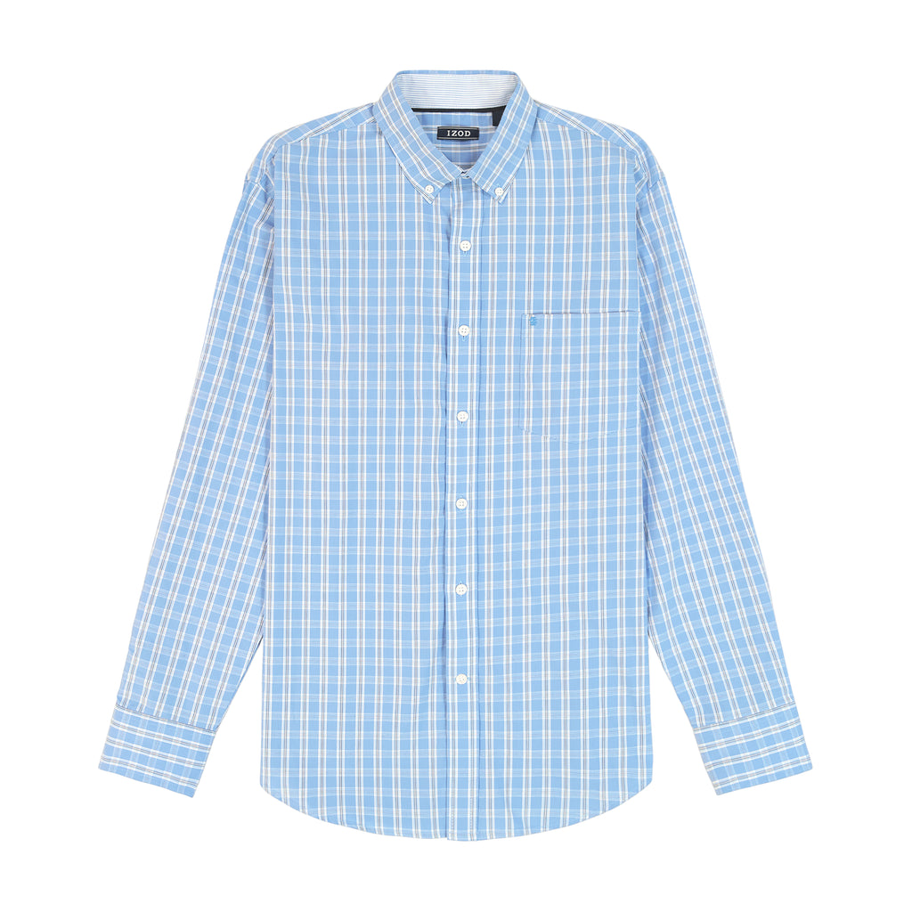 PERFORMANCE COMFORT LONG SLEEVE PLAID BUTTON DOWN SHIRT - AZURINE BLUE