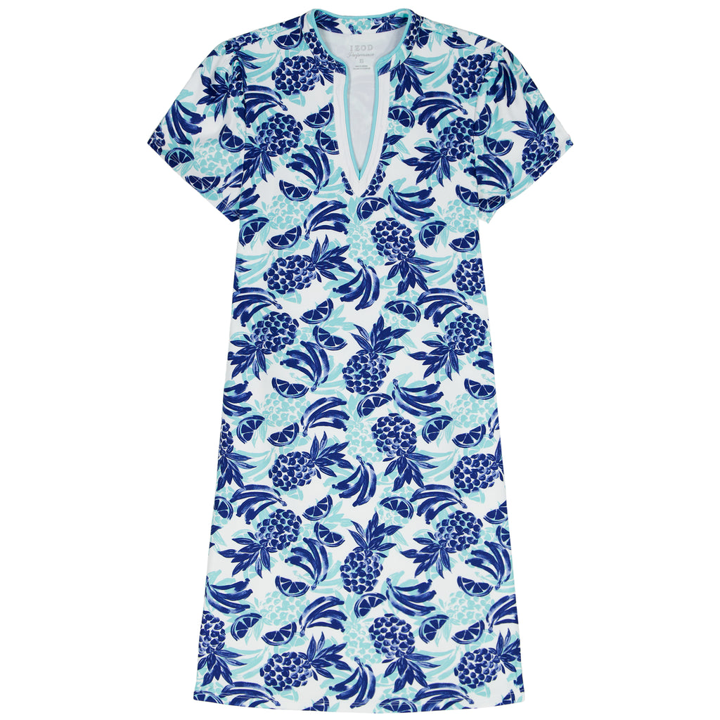 The Sara Short Sleeve Dress has an A-line cut, short sleeves, and pockets with contrast trim. Made with performance stretch fabric that wicks moisture and is machine washable.