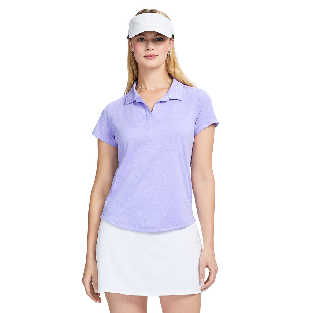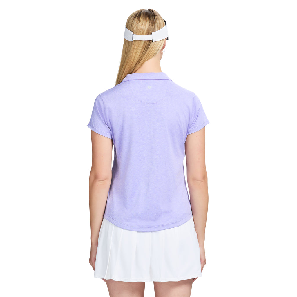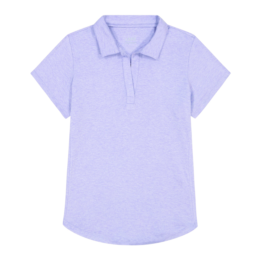 This short sleeve polo is made to move with you, whatever your day brings. The heathered jersey fabric has a natural stretch, so it stays comfortable and keeps its shape wear after wear. With moisture-wicking, quick-drying, and UPF-50 sun protection, it’s ready for anything—from a sunny morning walk to a casual afternoon out. Thoughtful details like shaped princess seams and a curved hem give it a flattering, feminine fit. Plus, it’s machine washable for easy care.