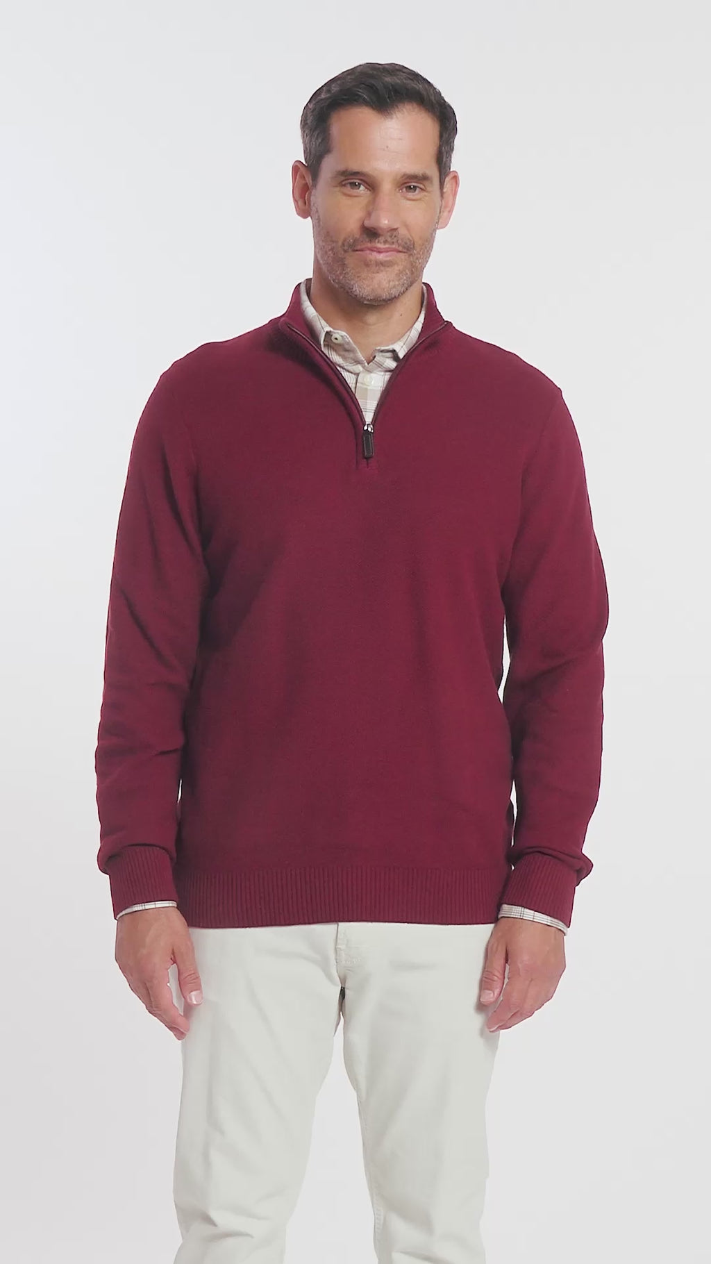 HONEYCOMB QUARTER ZIP SWEATER - VELVET MAROON