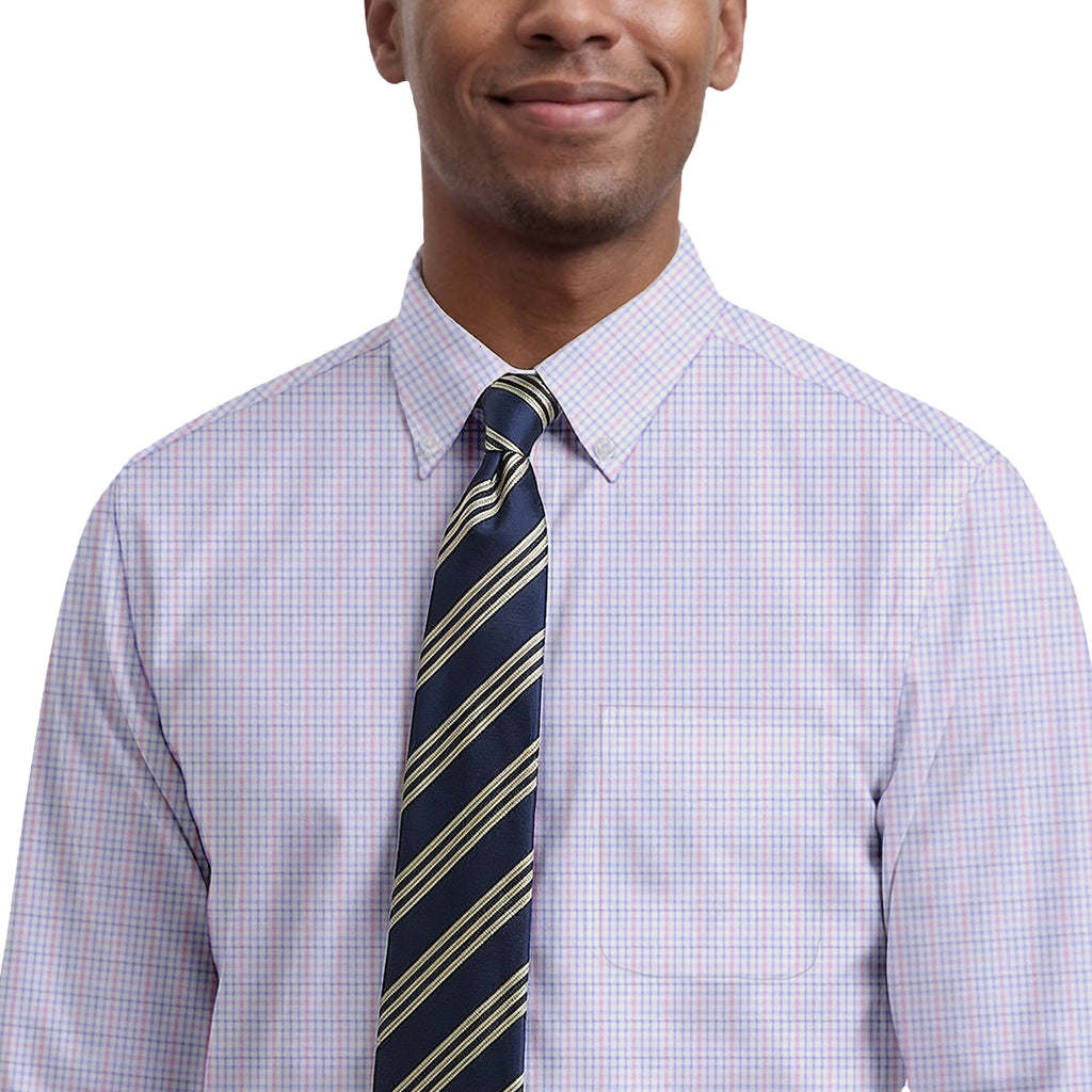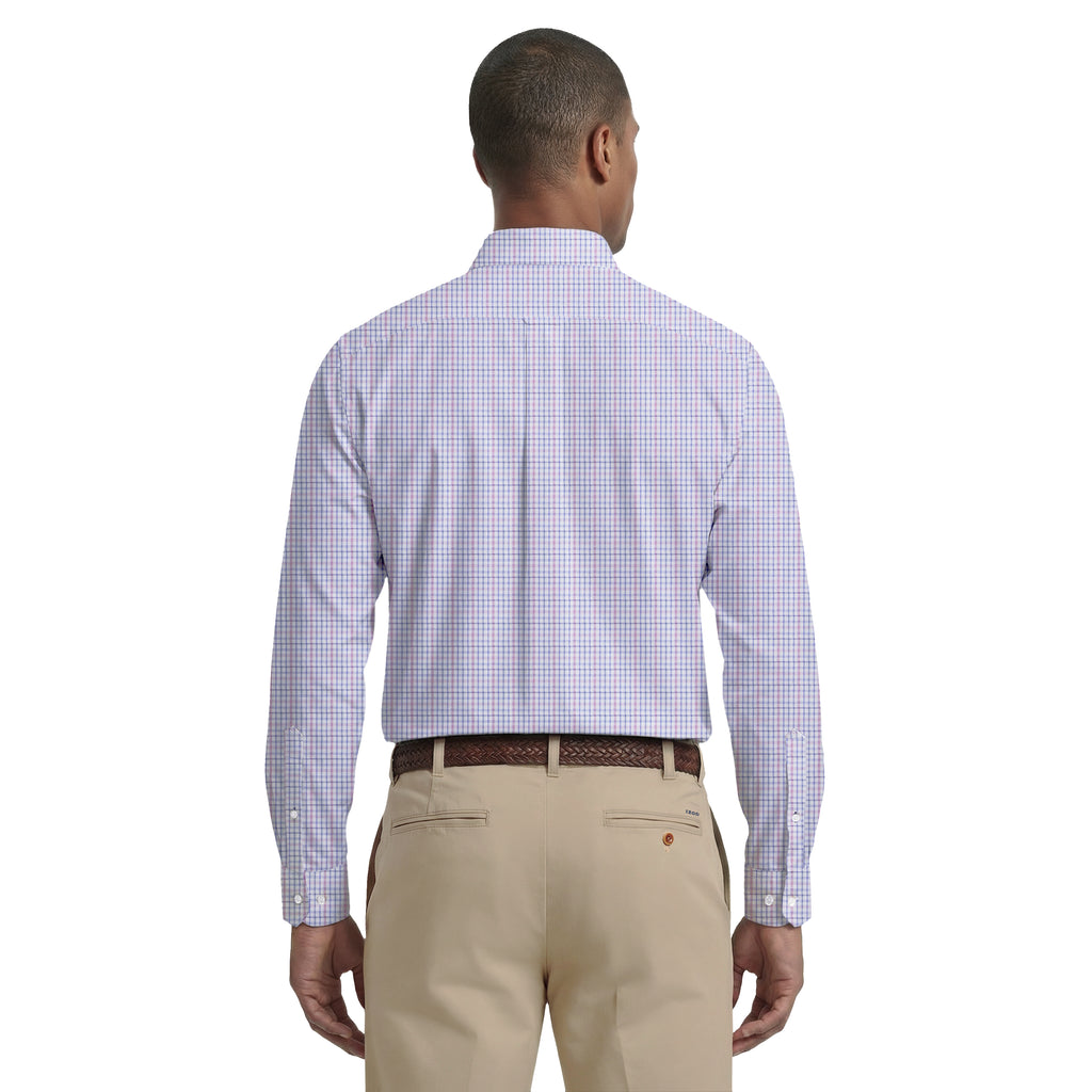 ALL-OVER STRETCH L/S PLAID BUTTON-DOWN DRESS SHIRT - CONE FLOWER
