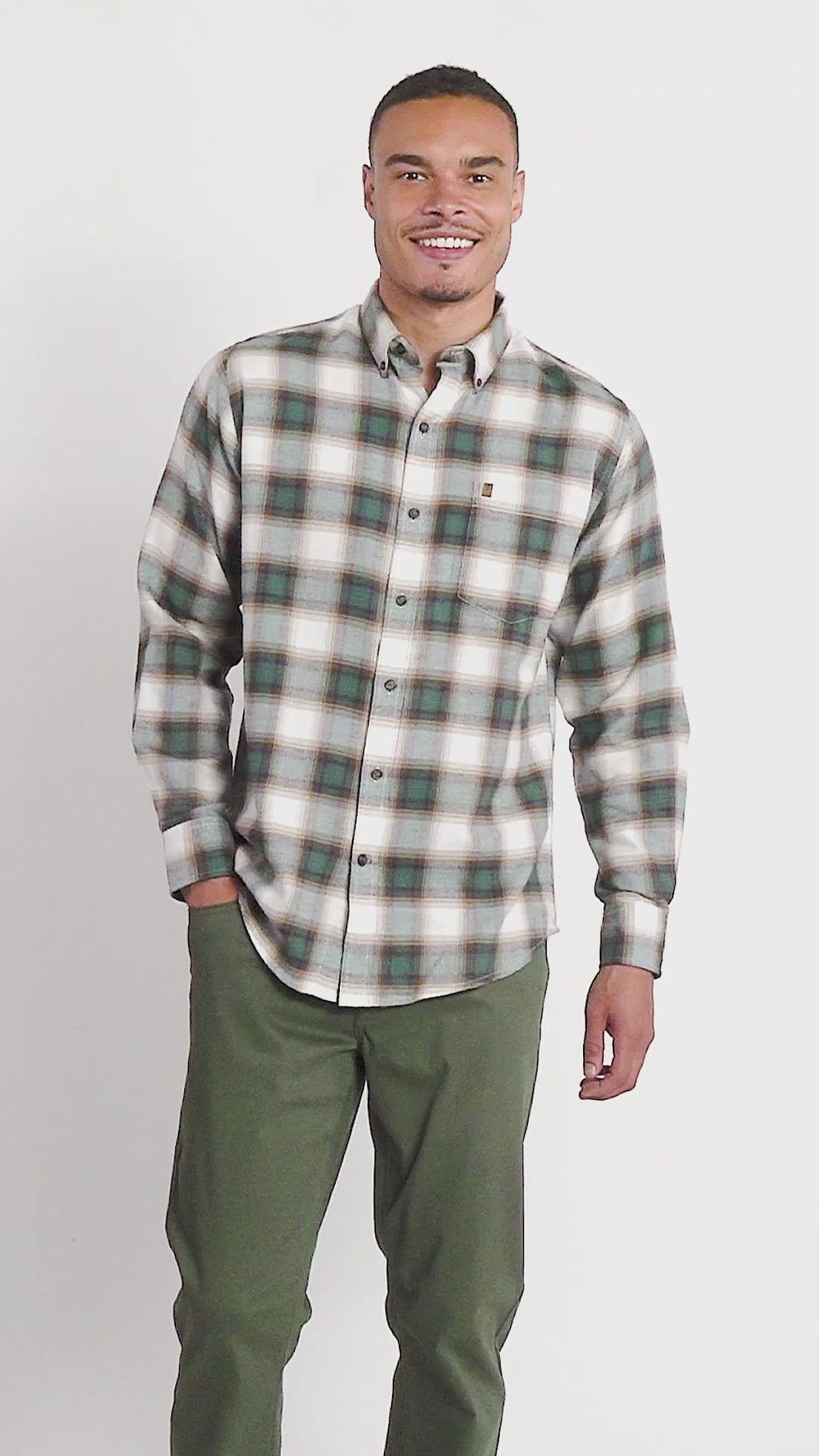 STRATTON FLANNEL LONG SLEEVE BUTTON DOWN SHIRT - SMOKE PINE