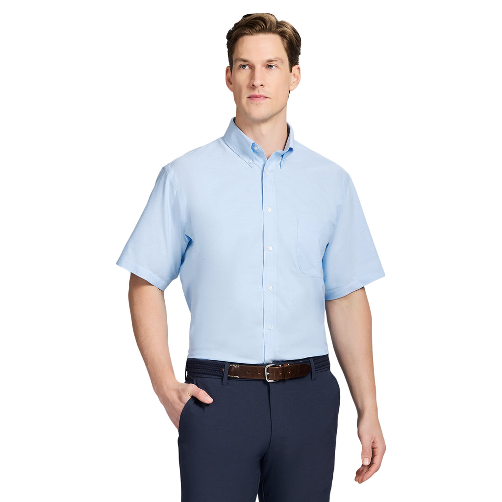 A classic-fit, short sleeve, dress shirt designed for a clean, tailored look. Crafted from a cotton-blend with added stretch, it’s wrinkle-resistant, machine washable, and made using recycled materials.