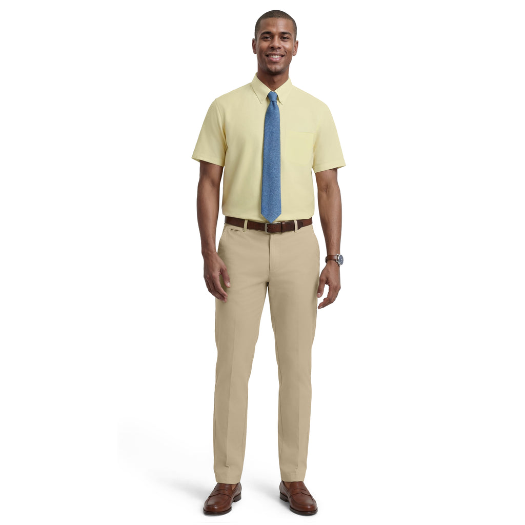 A classic-fit, short sleeve, dress shirt designed for a clean, tailored look. Crafted from a cotton-blend with added stretch, it’s wrinkle-resistant, machine washable, and made using recycled materials.