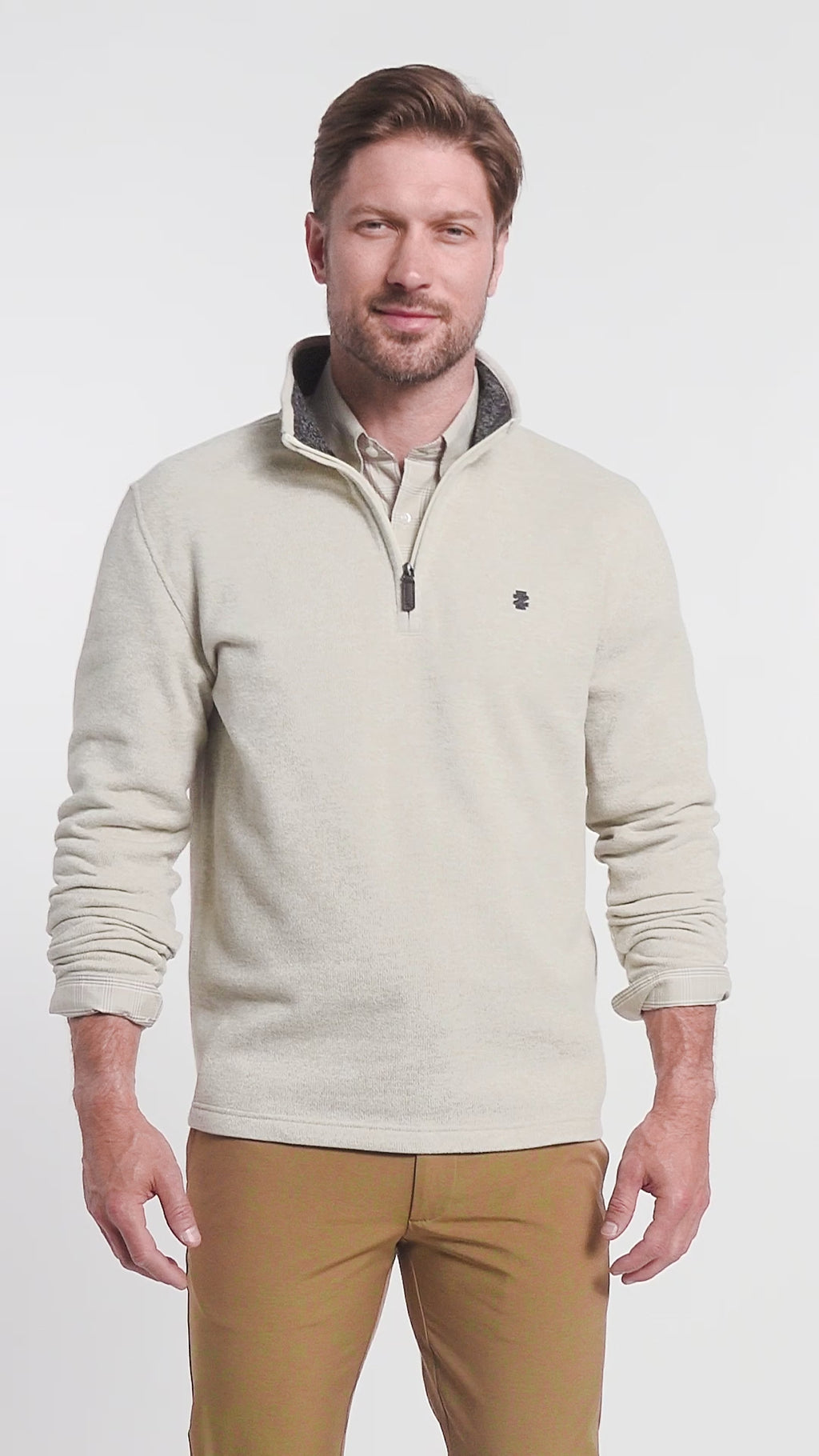 From workday to the weekend, this timeless 1/4-zip pullover is the perfect layer for when there's a chill in the air. The recycled fleece will keep you warm and the contrasting interior collar and faux leather zipper pull add subtle design details.