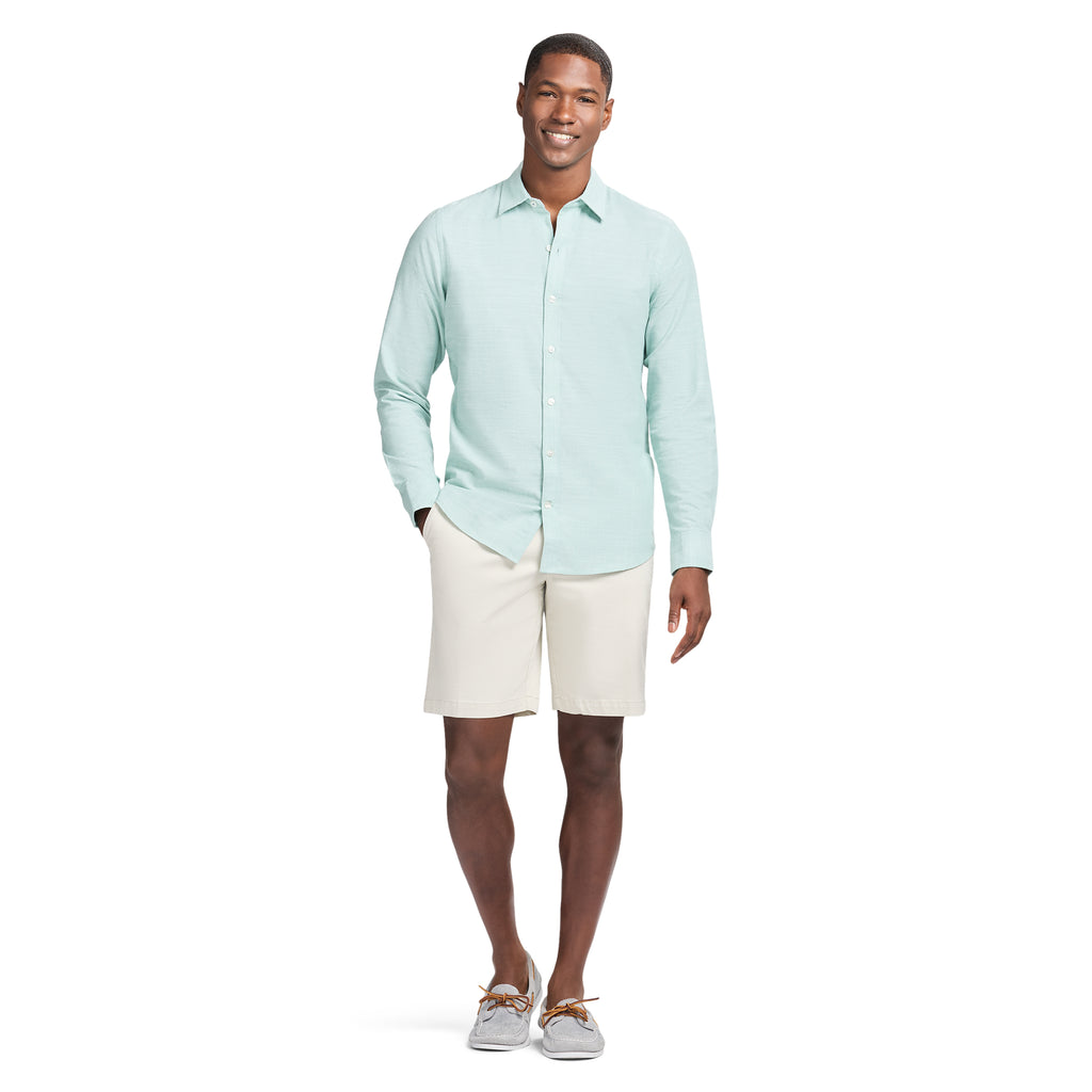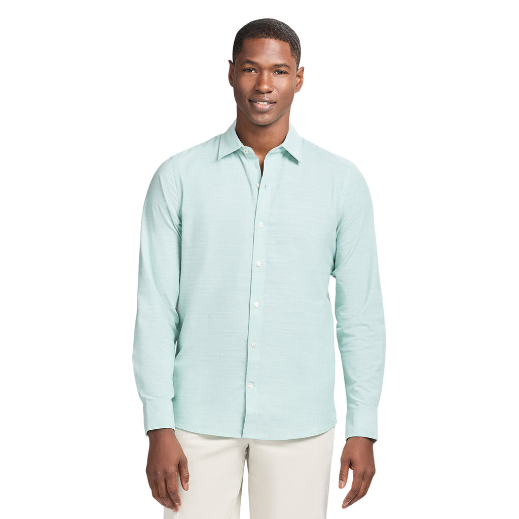 With a soft feel and a smooth finish, this long sleeve button-up shirt is cut in a classic fit. Finished with hidden collar buttons and spade pocket details.