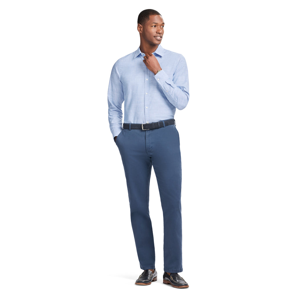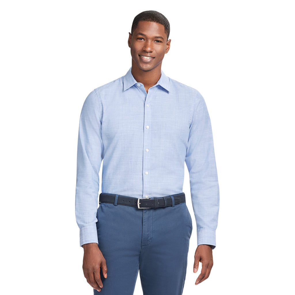 With a soft feel and a smooth finish, this long sleeve button-up shirt is cut in a classic fit. Finished with hidden collar buttons and spade pocket details.
