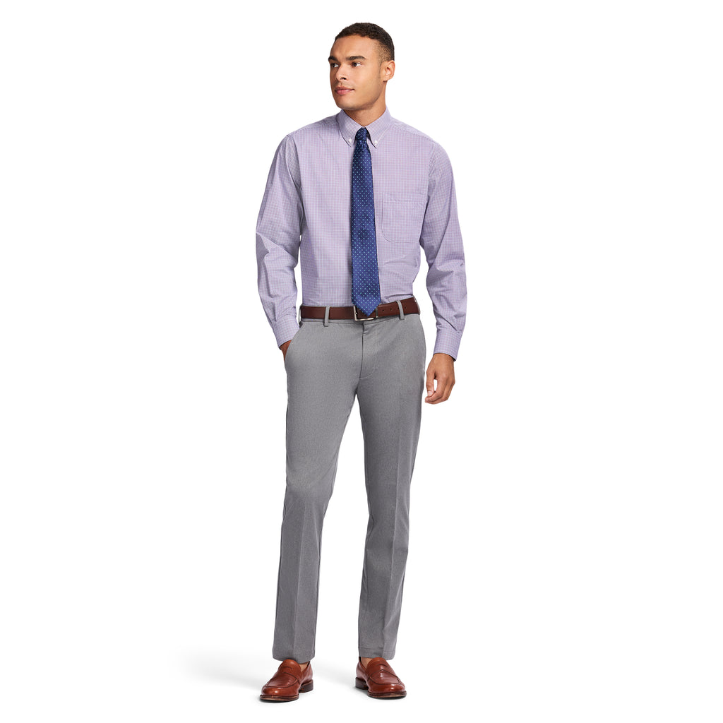 This classic fit, long sleeve, button down shirt is cut from an easy-to-wear fabric with added stretch, so it keeps its shape and moves with you throughout the day. The cotton-blend is machine washable made from recycled materials, it’s also easy on our planet. Also wrinkle resistant so you can leave your iron unplugged.