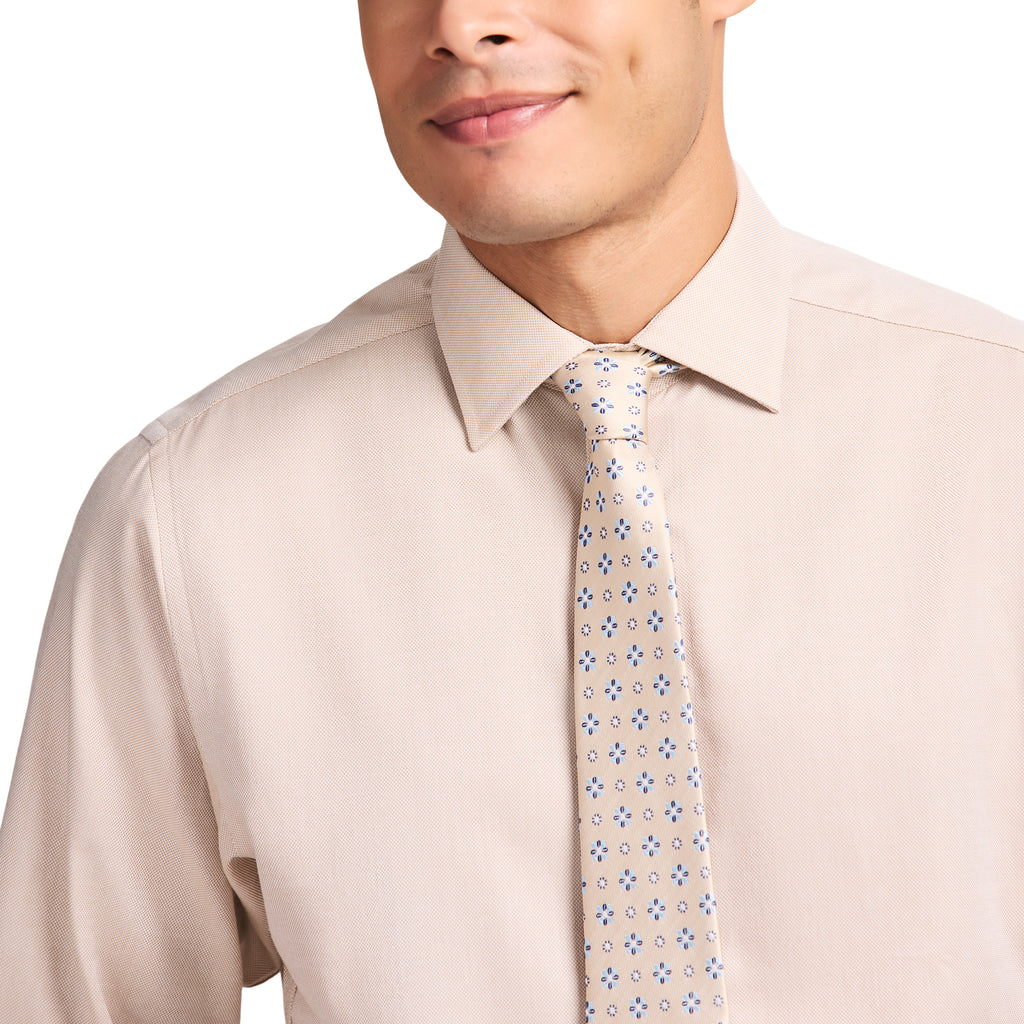 Refined comfort defines this button-down shirt made from a textured cotton-blend fabric with just enough stretch. It's cut in a classic fit and finished with a button-down collar and contrast cuff stitching. Plus, it's wrinkle resistant and machine washable for extra convenience.