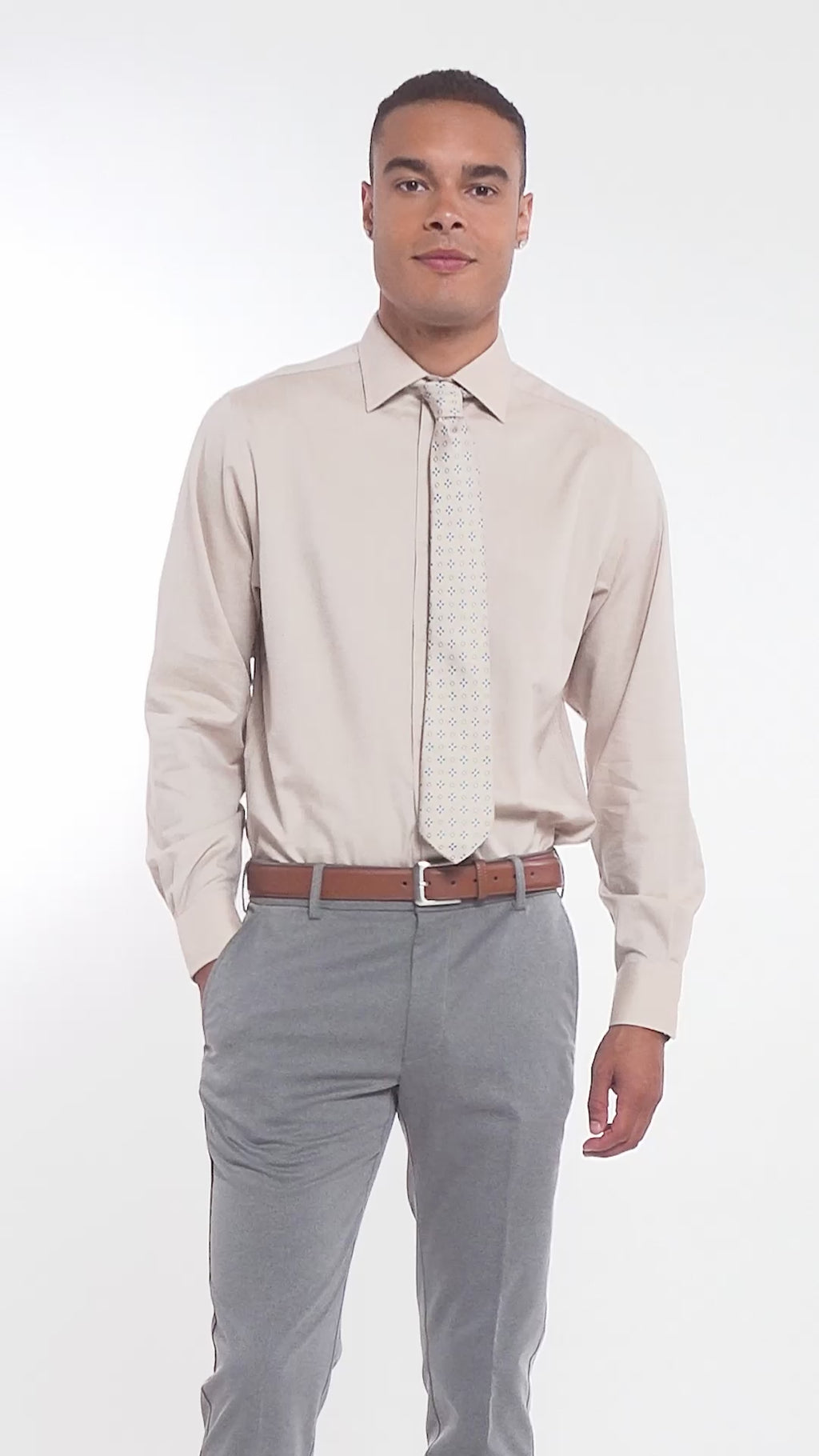 ROYAL TEXTURE BUTTON DOWN DRESS SHIRT - CEDARWOOD KHAKI