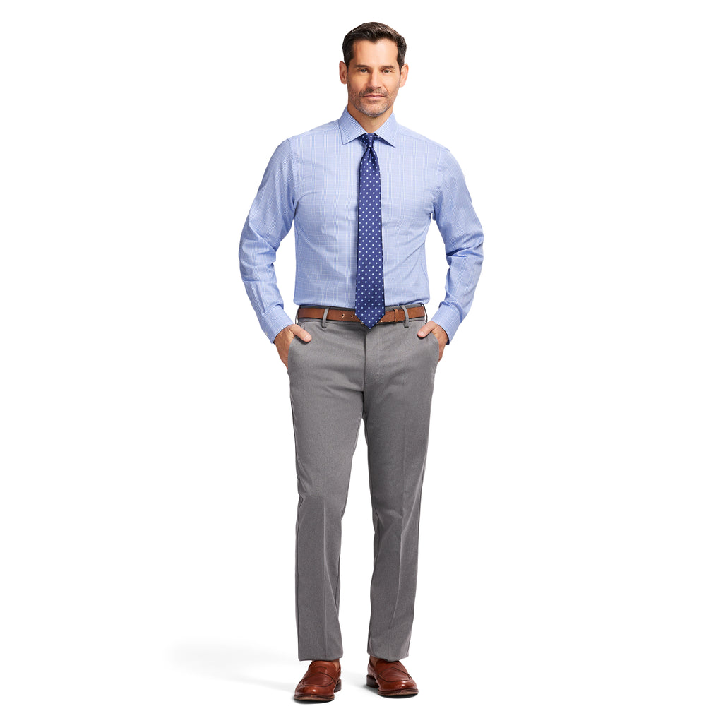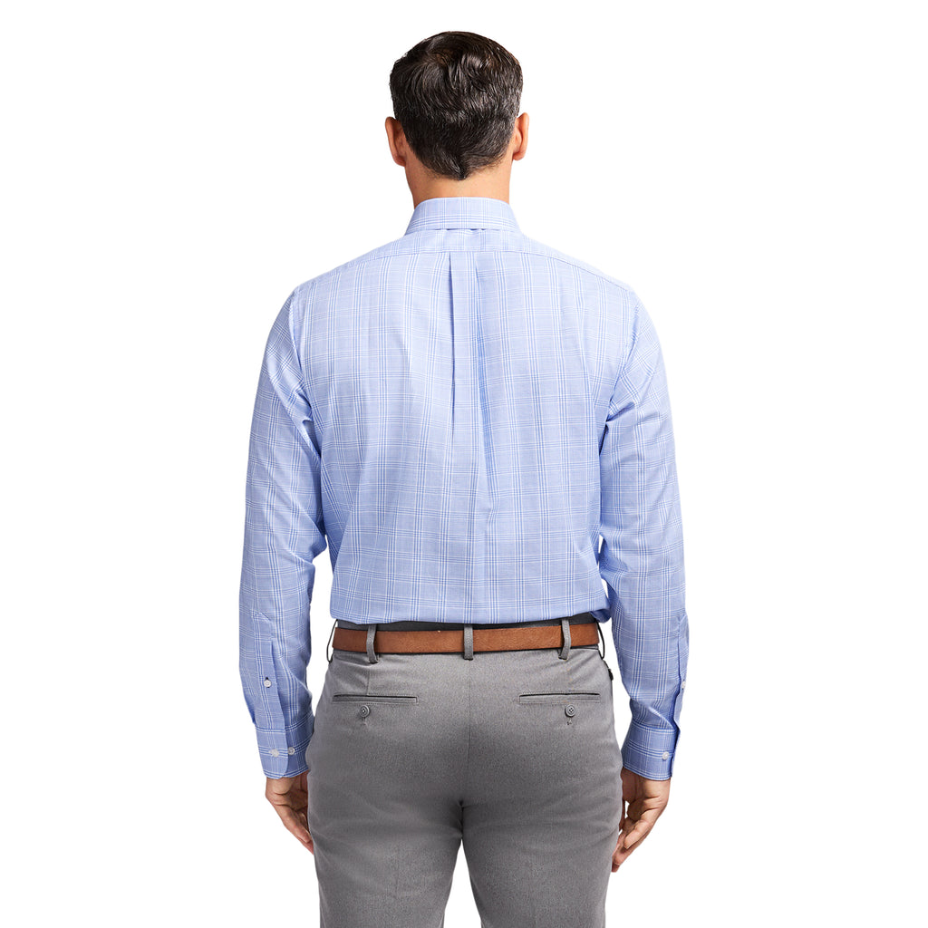 Refined comfort defines this button-down shirt made from a textured cotton-blend fabric with just enough stretch. It's cut in a classic fit and finished with a button-down collar and contrast cuff stitching. Plus, it's wrinkle resistant and machine washable for extra convenience.