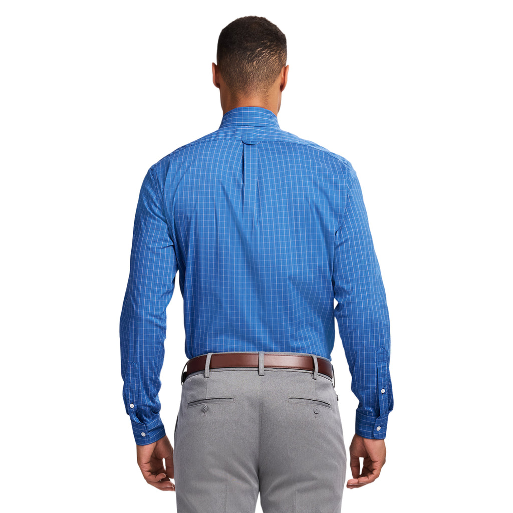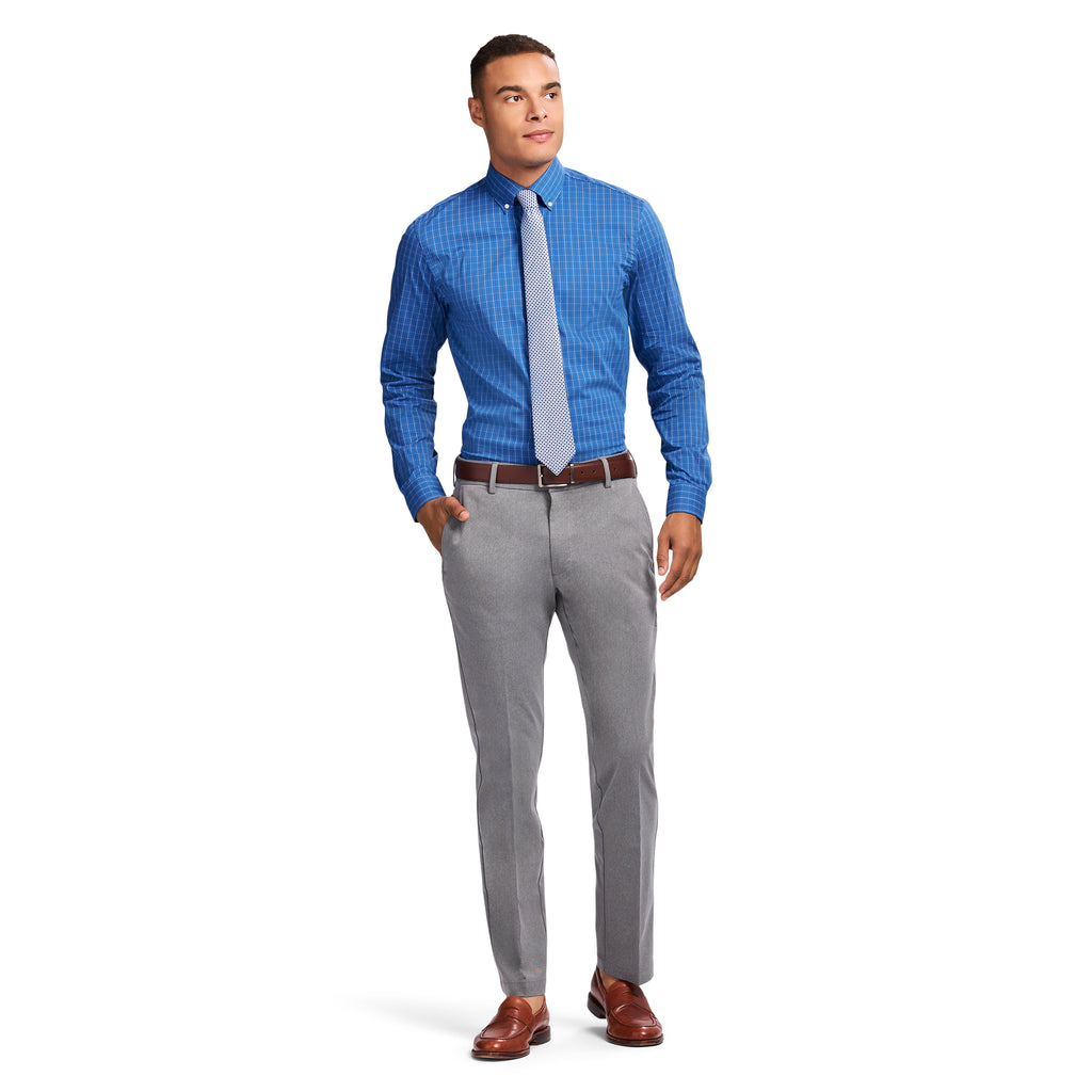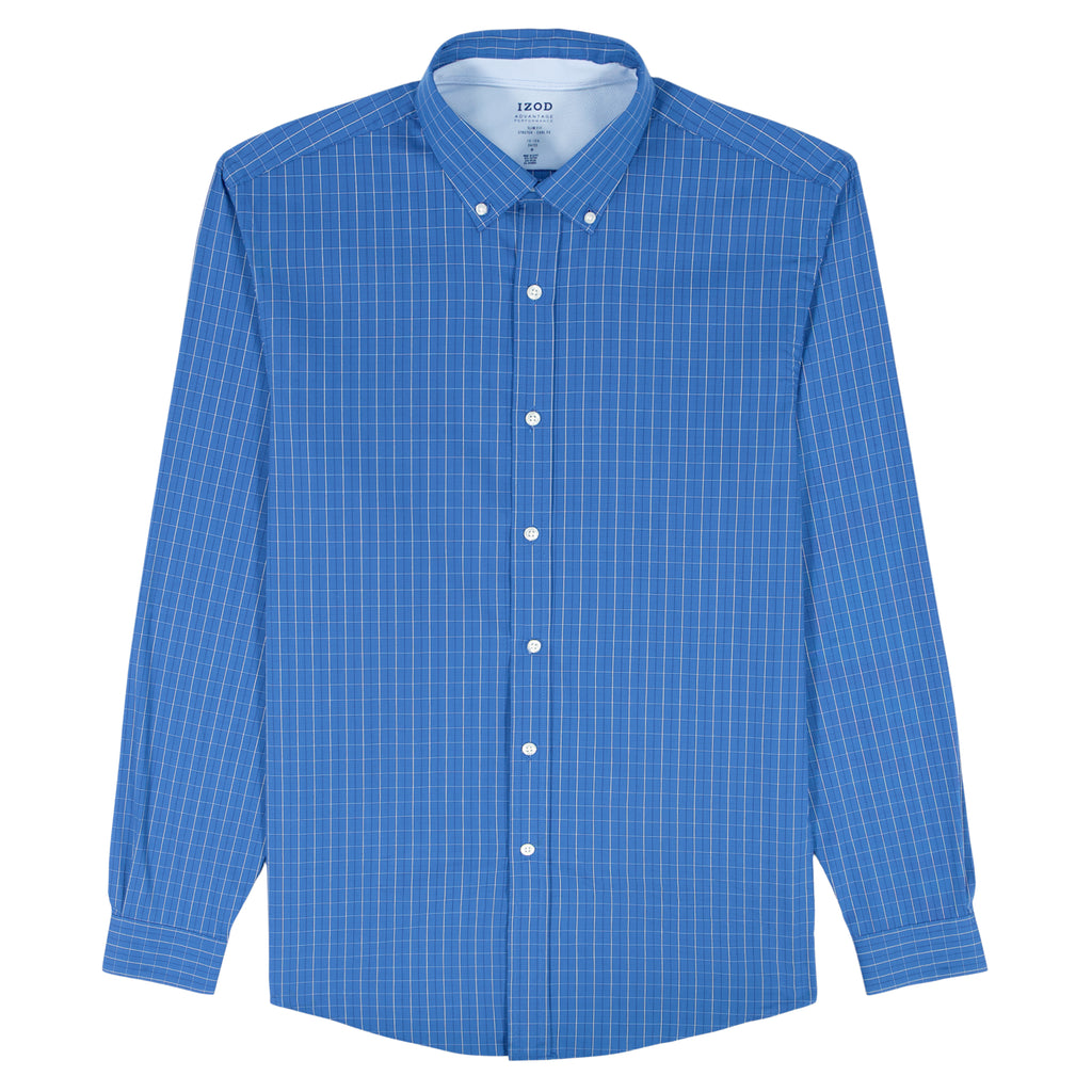 This slim fit, long sleeve, button down shirt is cut from an easy-to-wear fabric with added stretch, so it keeps its shape and moves with you throughout the day. The cotton-blend is machine washable and stay cool with a breathable mesh collar & all over moisture wicking fabric.