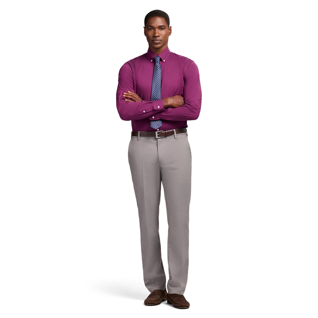 This slim fit, long sleeve, button down shirt is cut from an easy-to-wear fabric with added stretch, so it keeps its shape and moves with you throughout the day. The cotton-blend is machine washable and stay cool with a breathable mesh collar & all over moisture wicking fabric.