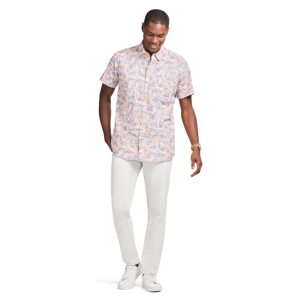 DOCKSIDE CHAMBRAY S/S PRINTED SHIRT - PEACH COBBLER