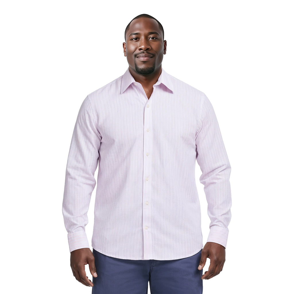 BIG & TALL LUXURY SPORT L/S STRIPED SHIRT - ROSE SHADOW