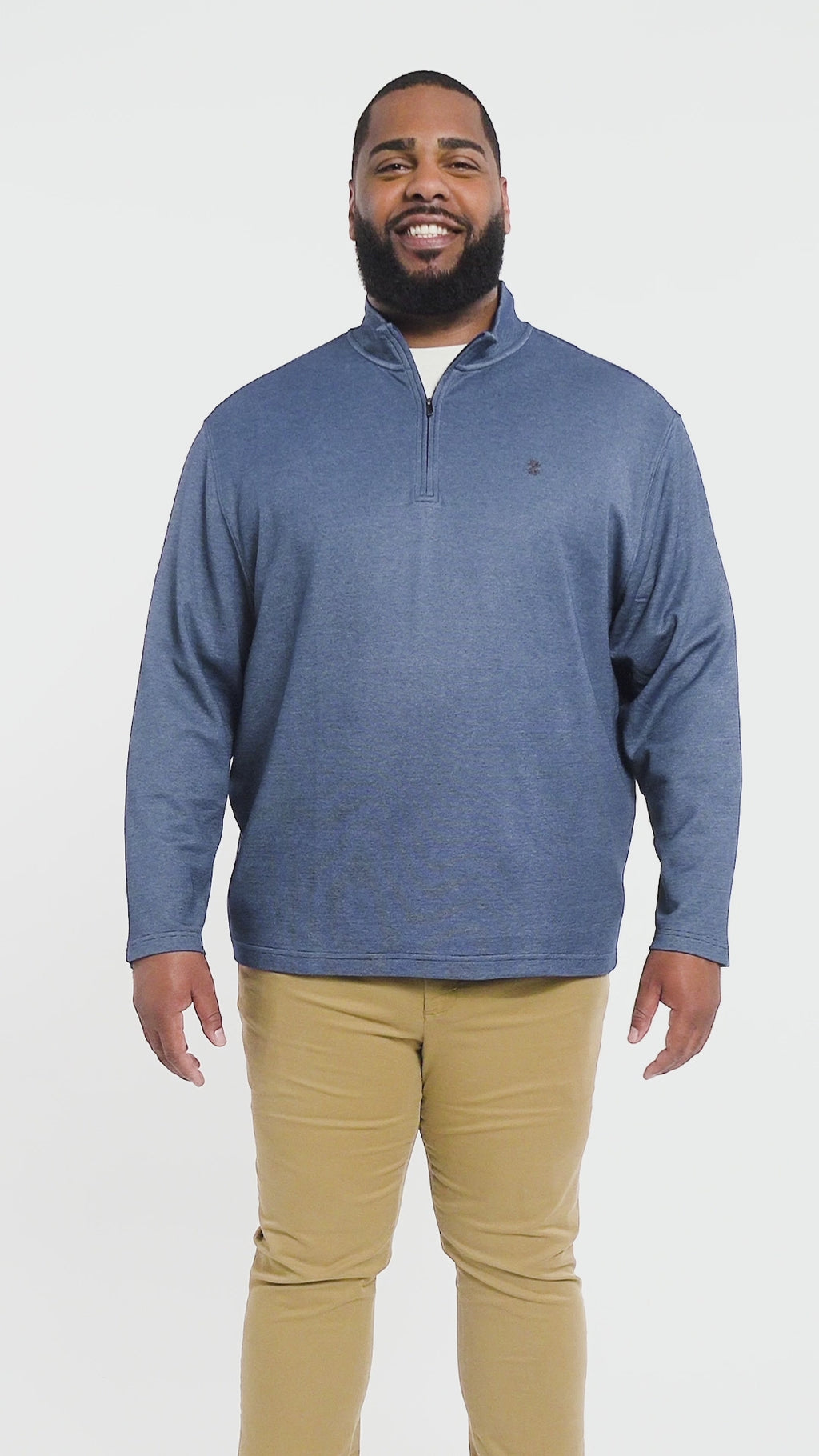 BIG & TALL PERFORMANCE COMFORT STRIPED QUARTER ZIP - NAVY
