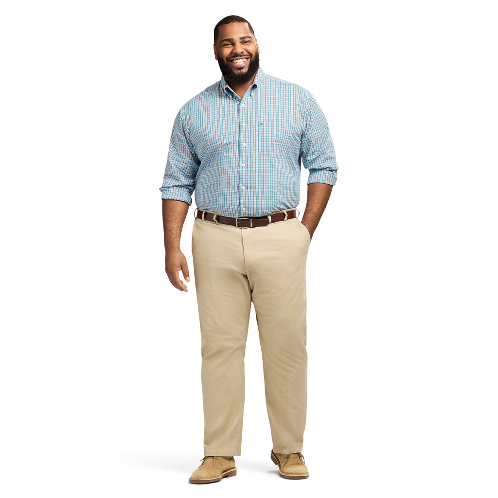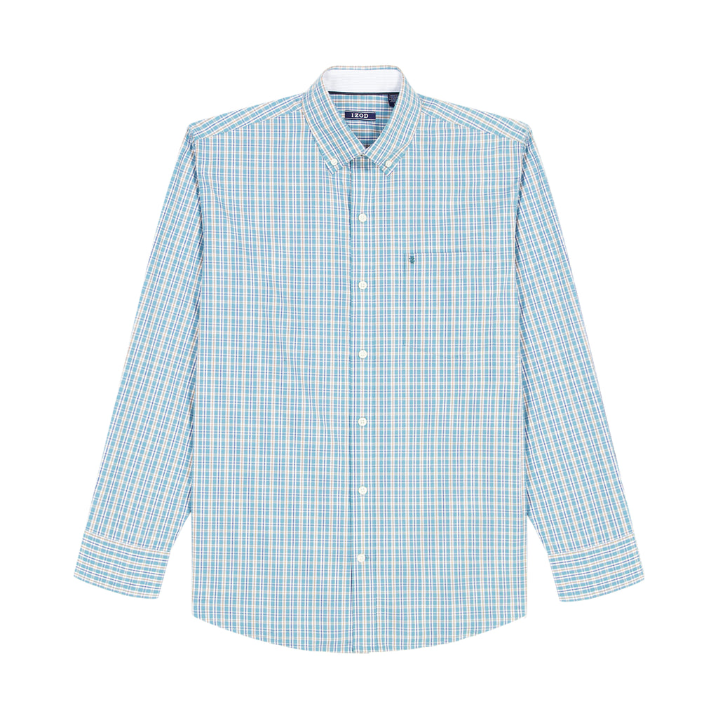 BIG & TALL PERFORMANCE COMFORT LONG SLEEVE PLAID BUTTON DOWN SHIRT - LARKSPUR