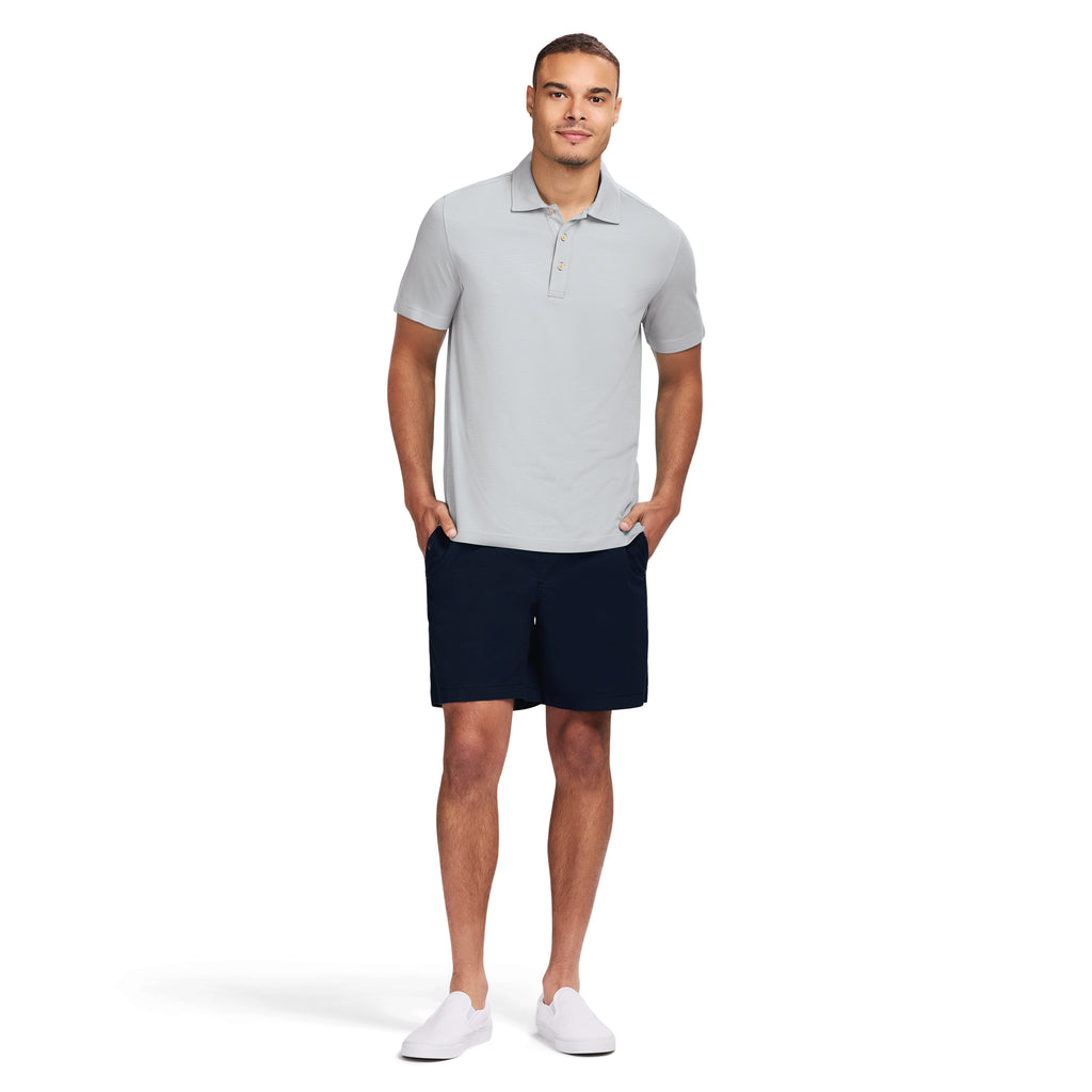 This lightweight polo blends breathable, quick-dry fabric with just enough stretch. Short sleeves and a three-button placket keep it classic and easygoing.