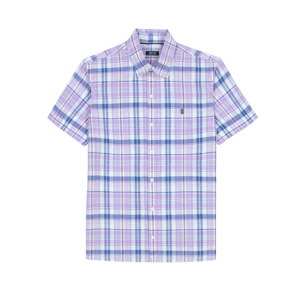 MADRAS PLAID SHORT SLEEVE BUTTON DOWN SHIRT - VIOLA