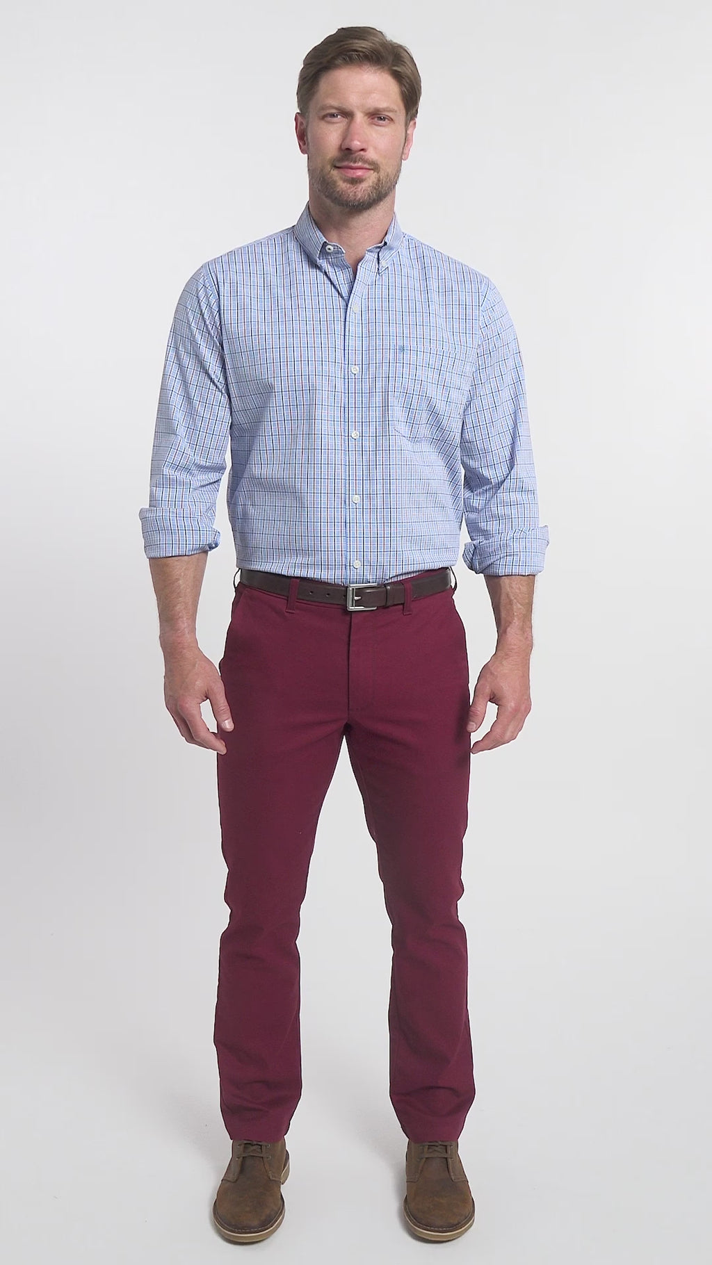 PERFORMANCE FLAT FRONT CHINO PANTS - VELVET MAROON