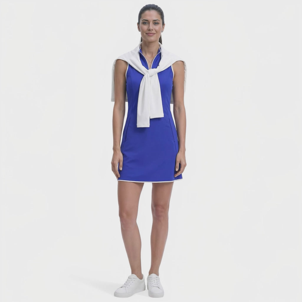 The L’acey Zip Court Dress is made from soft, moisture-wicking fabric with just enough stretch. A-line cut, princess seams, side pockets, and a logo zip make it easy to wear on the court, at the clubhouse, or out running errands.