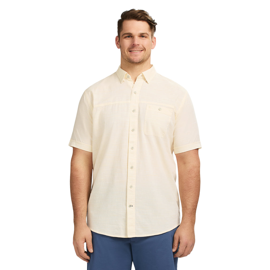 Casually cool and completely comfortable. With an athletic cut for an easy-to-wear untucked look, this short sleeve, button down wears like a shirt that's spent afternoons in the sun. It’s made from a cotton slub so it’s a true wash-and-wear shirt--grab it from the dryer, wrinkle-free.