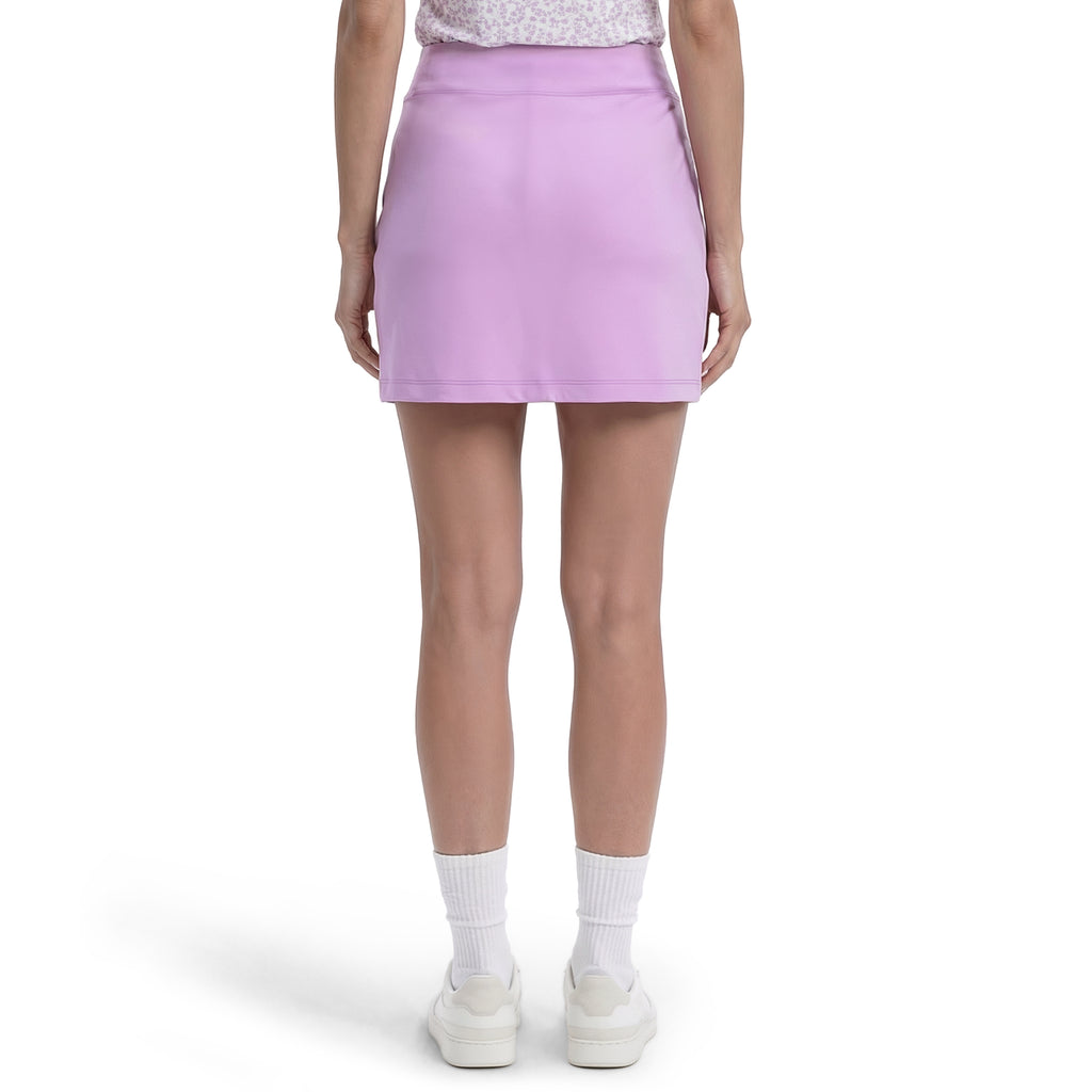 The Gracie Pull-On Skort is designed with a wide stretch waistband, built-in knit shorts, and side pockets. Finished with performance stretch, moisture-wicking fabric, and a 17" length.