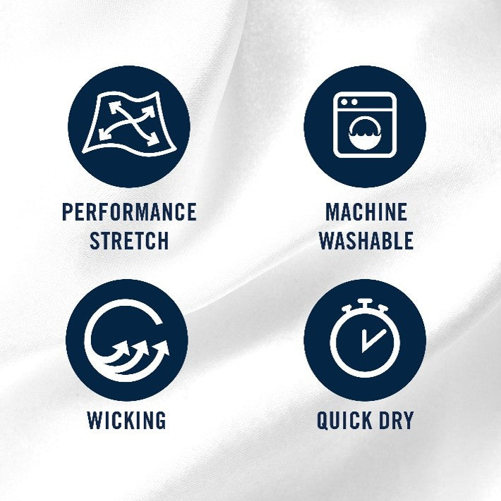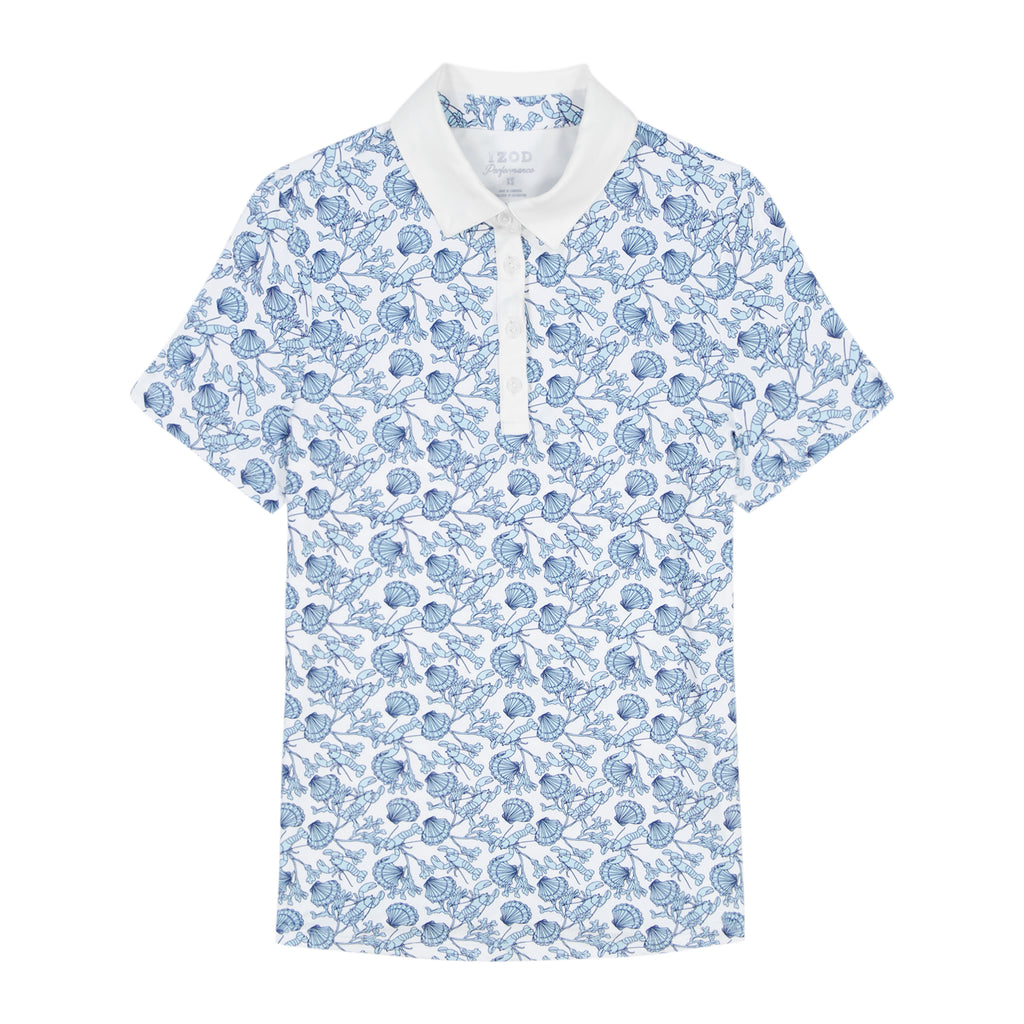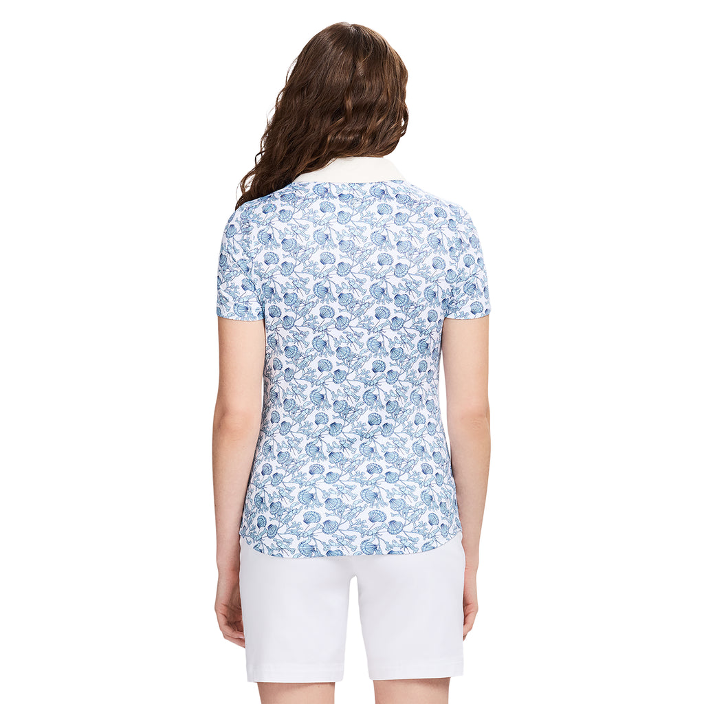 Elevate your game with this stylish short sleeve polo, cut from a printed body and solid trim details for a fresh, modern look. The moisture-wicking fabric keeps you cool and dry, while added stretch allows for easy movement. The 4-button design and pearlized logo buttons give it a clean, polished finish, and the contrast inner collar and placket offer a subtle pop of color. It’s also machine washable, making it as low-maintenance as it is versatile—perfect for the course, court or brunch with friends.