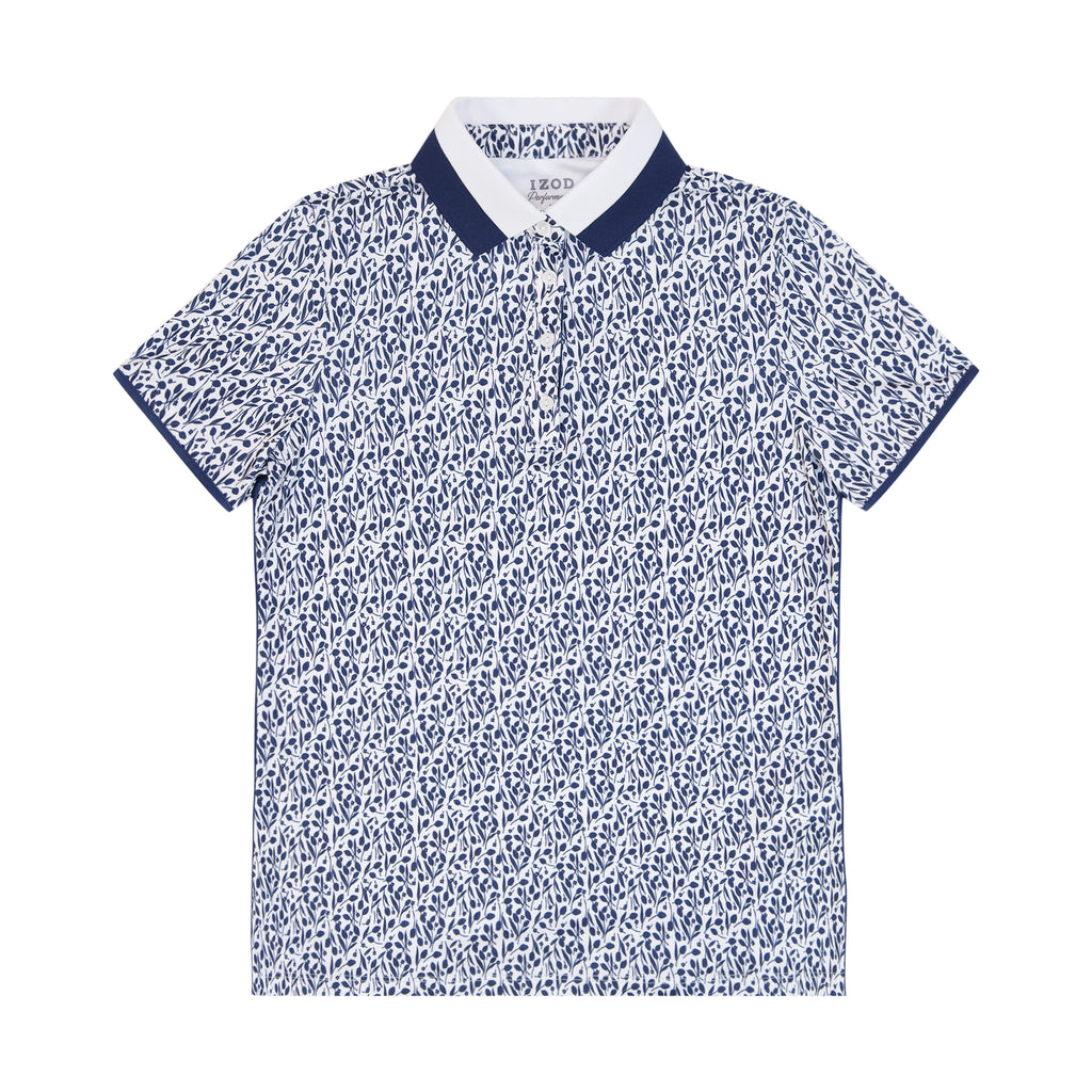 Style and performance come together with this short sleeve polo, cut from a printed fabric and trim details. The moisture-wicking fabric keeps you cool and dry. The 4-button design and pearlized logo buttons give it a clean, polished finish, and the contrast inner collar and placket offer a subtle pop of color. It’s also machine washable, making it as low-maintenance as it is versatile—perfect for everything from active days to casual errands.