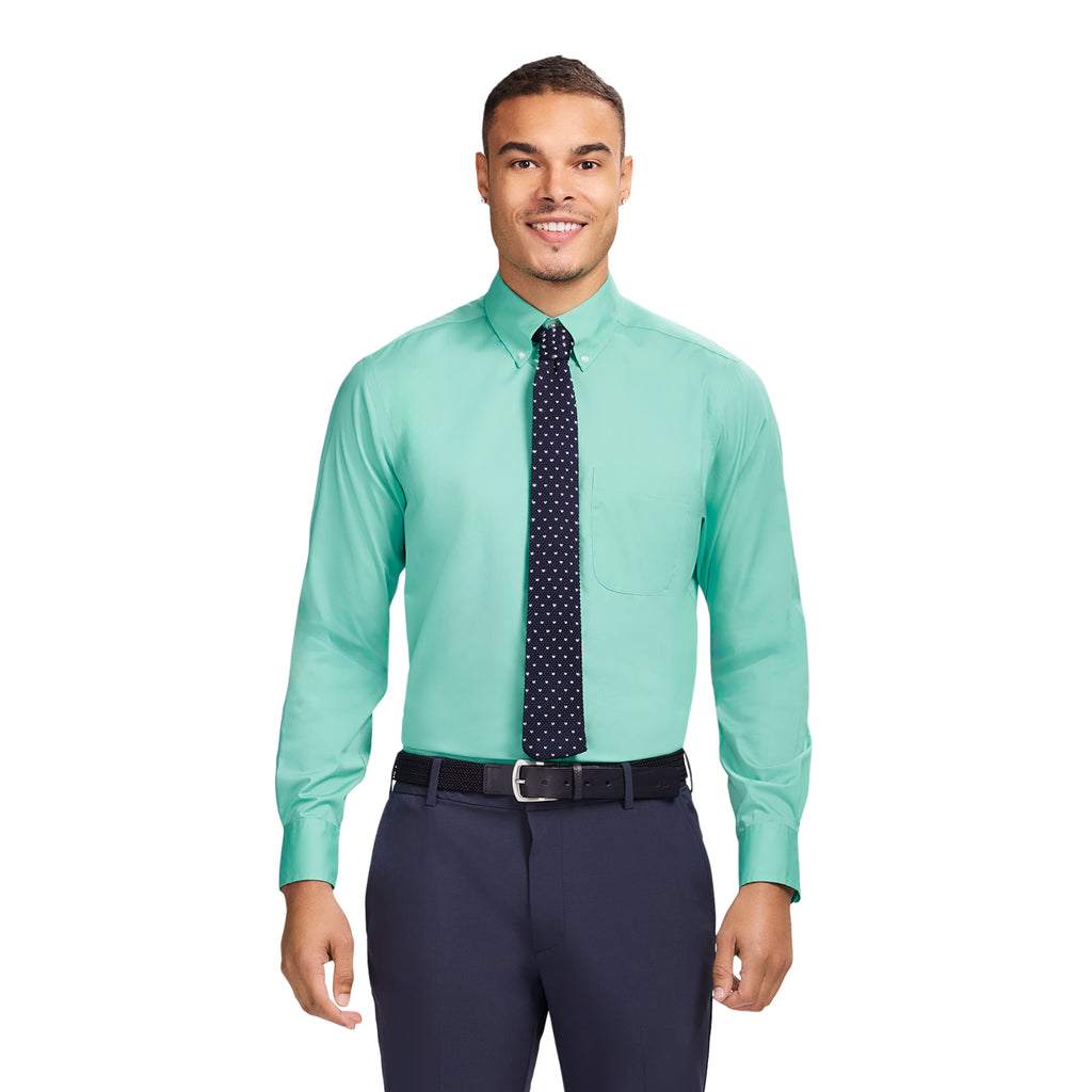 A classic-fit, long sleeve, dress shirt designed for a clean, tailored look. Crafted from a cotton-blend with added stretch, it’s wrinkle-resistant, machine washable, and made using recycled materials.