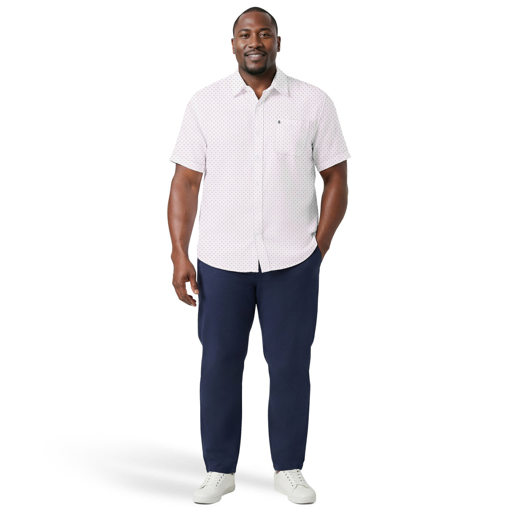 BIG & TALL BREEZE S/S PRINTED BUTTON-DOWN SHIRT - BRIGHT WHITE